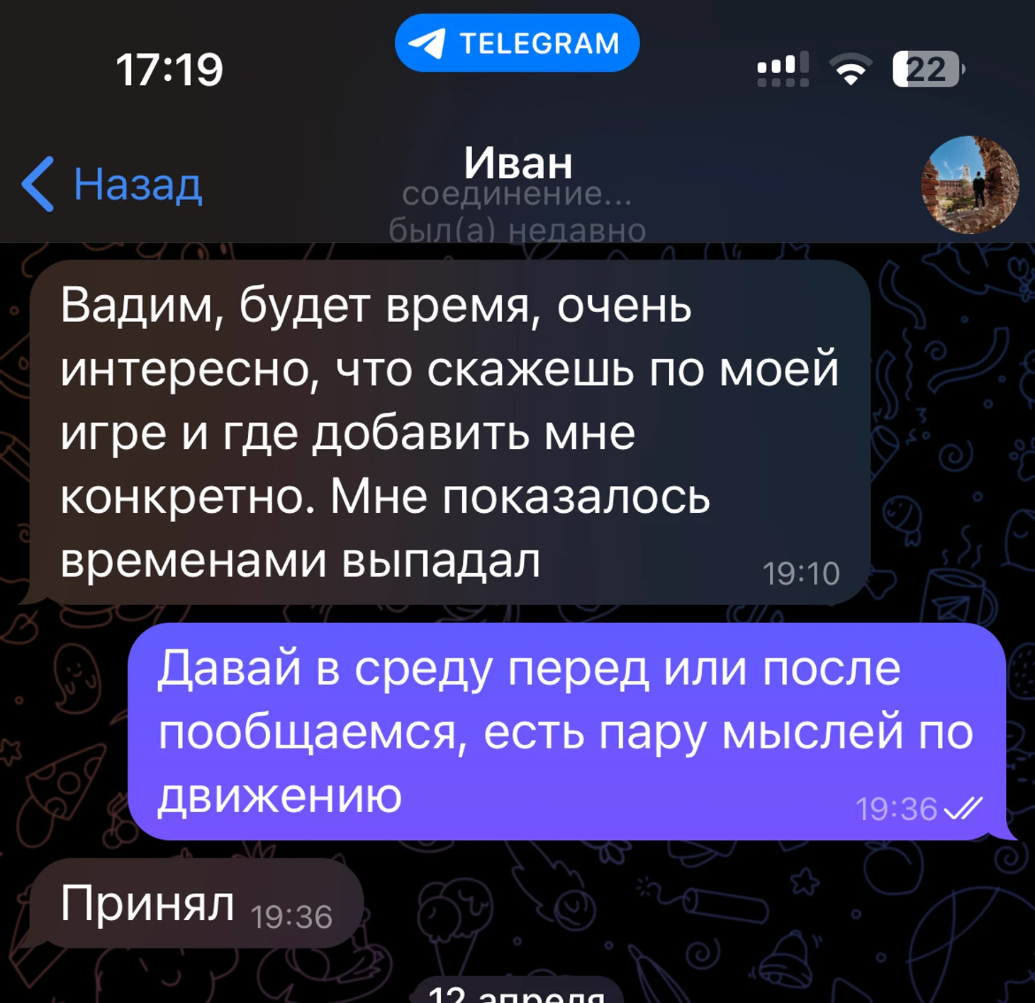 Честно говоря, я личные беседы еще не практиковал. Мне от ребят в последнее время часто начали поступать вот такие запросы.