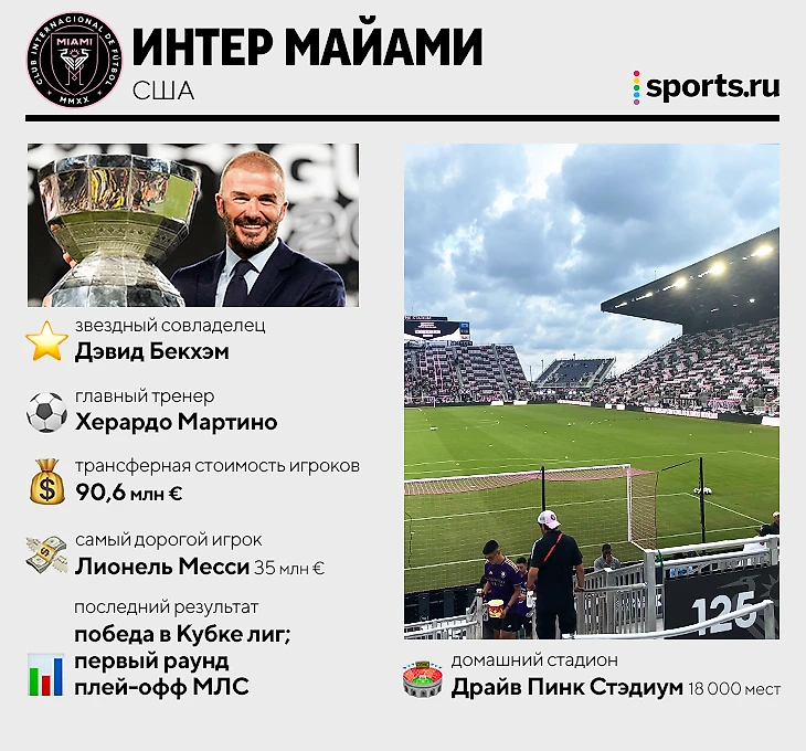Бекхэм долго мучился перед дебютом «Интера» в МЛС. Он еще в 2014-м купил франшизу клуба МЛС за 25 млн долларов (вместо 125 млн; такое право на скидку англичанин получил еще в 2007-м, когда перешел в «Лос-Анджелес Гэлакси») и объявил о планах создать команду. Но клуб дебютировал в МЛС только в 2020 году. Бекхэм долго не мог найти землю в городе для постройки стадиона – мешали местные бизнесмены и жители (например, когда подготовили проект для строительства в центре города рядом со стадионом баскетбольного «Майами Хитс», союз местных жильцов заспамил финансовое управление Майами жалобами – стадион закрыл бы вид на океан).