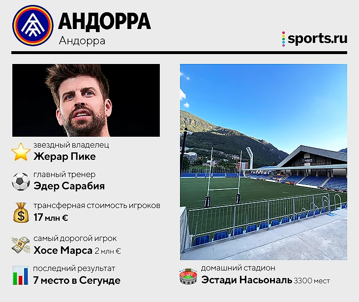 • Андорра – карликовое государство (население – 81 тысяча человек), в котором базируется клуб Пике.