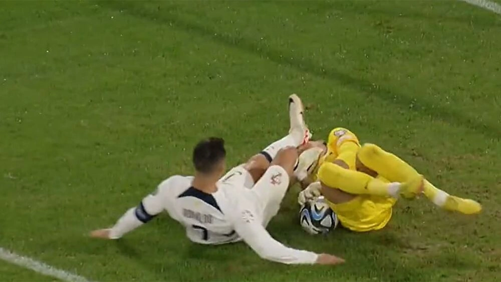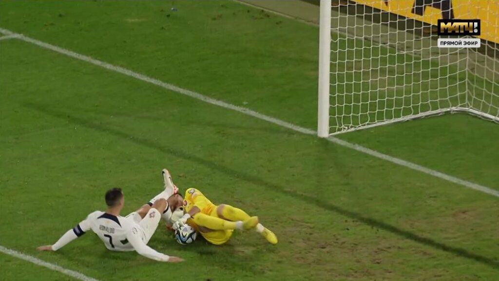 Роналду и Дубравка недолго были одноклубниками – в сезоне-2022/23, пока португалец не уехал в «Аль-Наср». Рефери посчитал фол незначительным и показал лишь желтую.