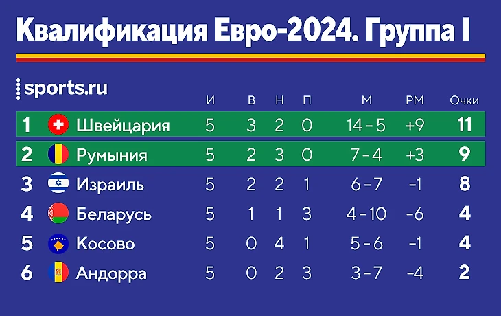 Румыния и Израиль решили не нарушать тенденцию, тоже ничья, забили Денис Алибек и Оскар Глух. Израильтяне были активнее, но этого не хватило для победы.