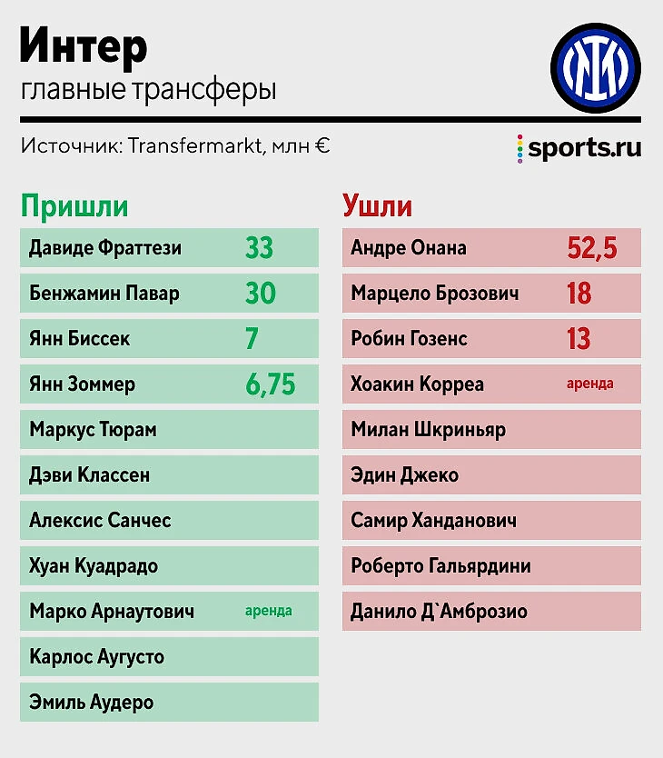 Срыв Самарджича чуть испортил впечатления от средней линии, но бесплатный Классен и Сенси – надежная страховка. Одновременно «Интер» взял полузащитника, который лучше всех атакует штрафную из глубины. Фраттези уже показал на предсезонке, как преобразит команду – осталось подождать, пока Индзаги вклеит его в основу.