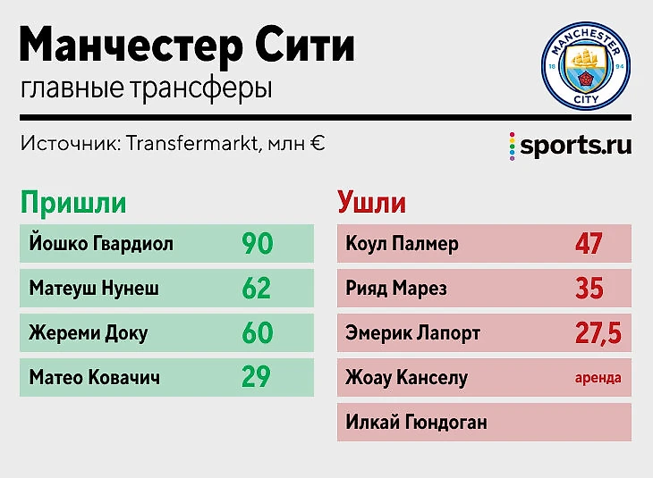 Гармония в раздевалке – важный пунктик для Пепа, поэтому помимо Рияда снова отправили в аренду Жоау Канселу. С португальцем покончено – Гвардиола даже не заявлял защитника на летние матчи, а перед арендой вообще отпустил тренироваться в Португалию. Прошлогодний демарш не забыт – в отношениях поставлена точка. То же самое – с молодым Коулом Палмером. Пепа можно критиковать за то, что не давал шансов, но летом Палмер поставил условие из серии «либо играю, либо ухожу». Гвардиола такое не любит.