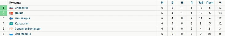 Вчера сборная Казахстана по футболу обыграла сборную Северной Ирландии. Эта победа оставляет шансы отобраться на Евро-24 напрямую, но теперь необходимо набирать очки с Данией, Финляндией и Словенией в гостях. Сейчас таблица группы H выглядит так:
