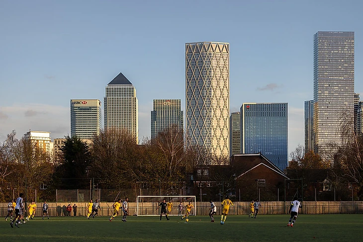 ФК «Фишер» в 9-м дивизионе – преемник старого «Фишер Атлетик». Новый стадион, построенный на деньги болельщиков, открывает романтичный вид на деловой центр Канэри-Уорф.