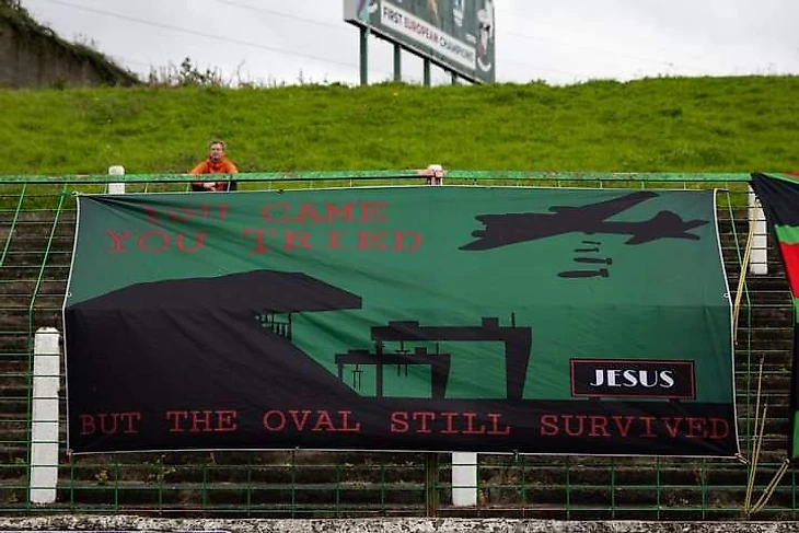 Не нон-лига, но тоже очень круто. Профессиональный фотограф Mike Bayly побывал в Северной Ирландии и поснимал знаменитый «Овал». Удивительно, но почти точная копия старого стадиона «Уиган Атлетик» времен нон-лиги – «Спрингфилд Парк».