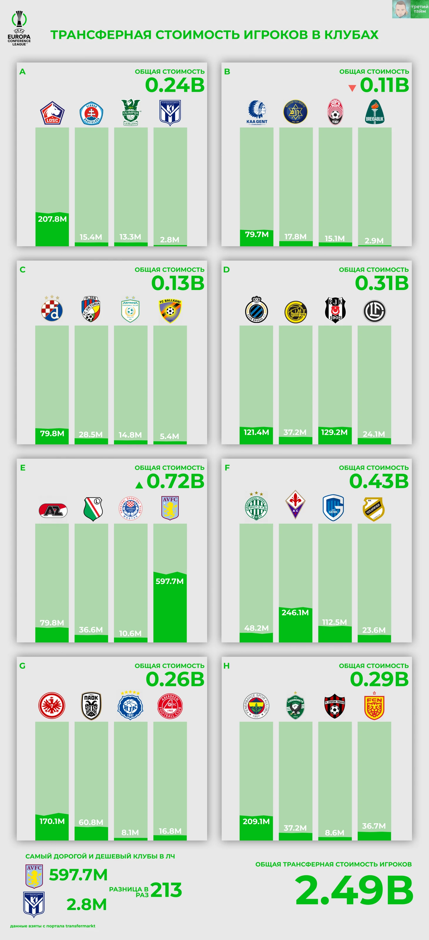 Любопытный факт – стоимость группы F в Лиге Чемпионов больше, чем стоимость всех участников Лиги Конференций. Чем не показатель для руководства УЕФА, что у них что-то сломалось в их денежной и справедливой системе.