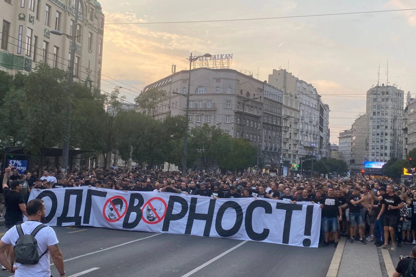 Против Вучелича, Вазуры и их партнёров фанаты «Партизана» проводят массовые уличные протесты и бойкотируют все домашние матчи. Кстати, на последнее шествие приходил даже Душко Вуйошевич. А ещё матчи «Партизана» - это бесконечные заряды «Руководство - вон» вперемешку с «Вучич - [тот, чьи парады он разрешает каждый сентябрь]». Причём с нефанатских секторов.