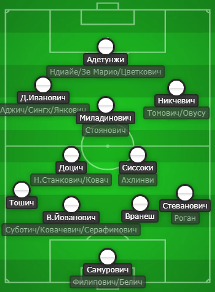 Атака - Митро, понятно, всё, надеюсь к Евро поднаберет физику, Душан Влахович - Отдельная песня, хоть бы уже ушел из этого клубешника, потенциал звезды очевиден, но пока нет. Душан Тадич - с наступающим, 35-летием, с Джековичем круто фигачат в Фенере!
