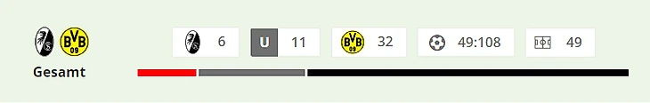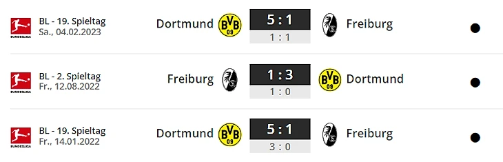 Страшные соперники BVB: В последних 17 домашних матчах Бундеслиги «Фрайбург» пропустил всего десять голов, и не более одного за игру. Последней командой гостей, забившей более одного гола на стадионе «Европа-Парк», была «Боруссия» Дортмунд, победившая со счетом 3:1 в августе 2022 года. BVB выиграли три последних матча Бундеслиги у команды Штрайха (13–3 гола).