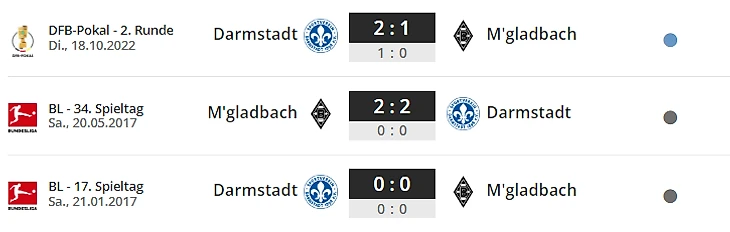 Безвыигрышная дуэль: семь команд по-прежнему не одержали победы в этом сезоне, в том числе «Дармштадт» и «Боруссия» Менхенгладбах — это единственная дуэль между двумя безвыигрышными командами в четвертом туре. «Жеребята» имеют такой же хороший результат в Бундеслиге против любой другой нынешней команды Бундеслиги, как и против «лилий» (четыре победы, три ничьи, одно поражение).