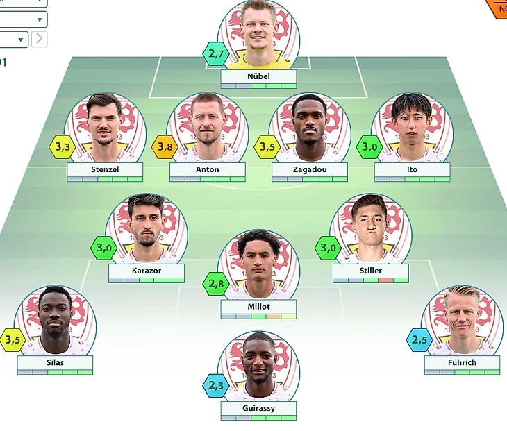 «Штутгарт» : Нюбель – Штенцель, Антон, Загаду, Ито – Каразор, Штиллер – Силас, Мийо, Фюрих – Гирасси