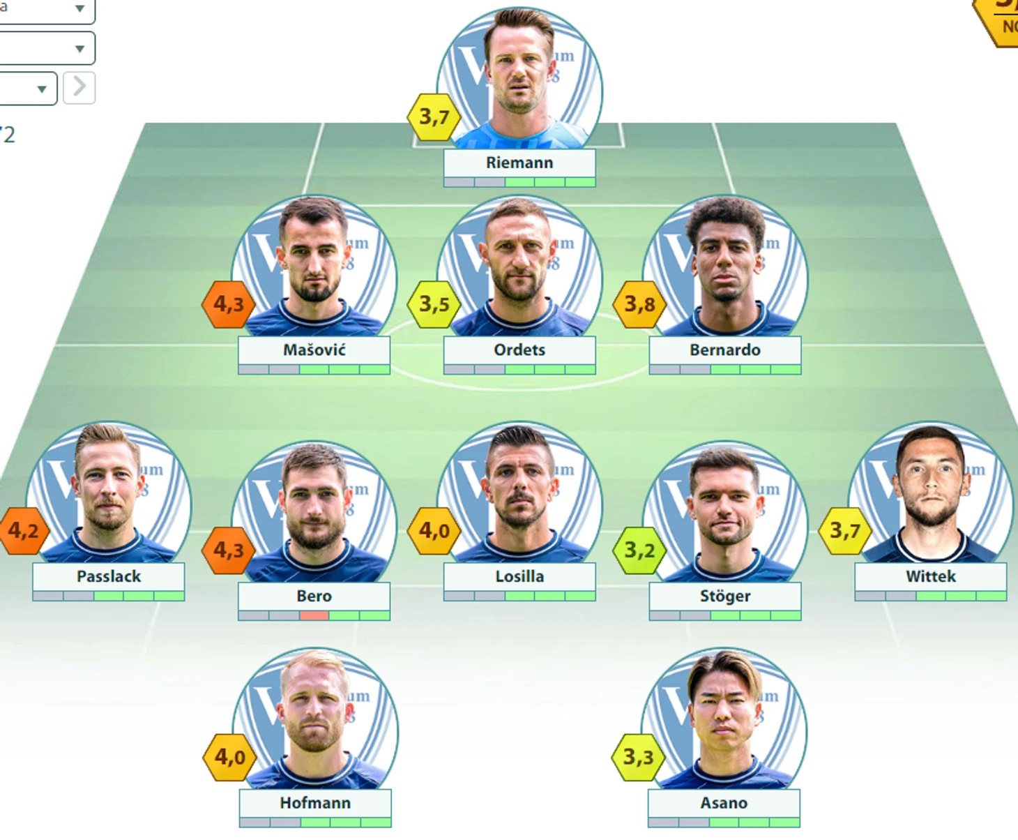 «Бохум» : Риманн – Машович, Ордец, Бернардо – Пасслак, Штегер, Лосилла, Беро, Виттек – Асано, Хофманн