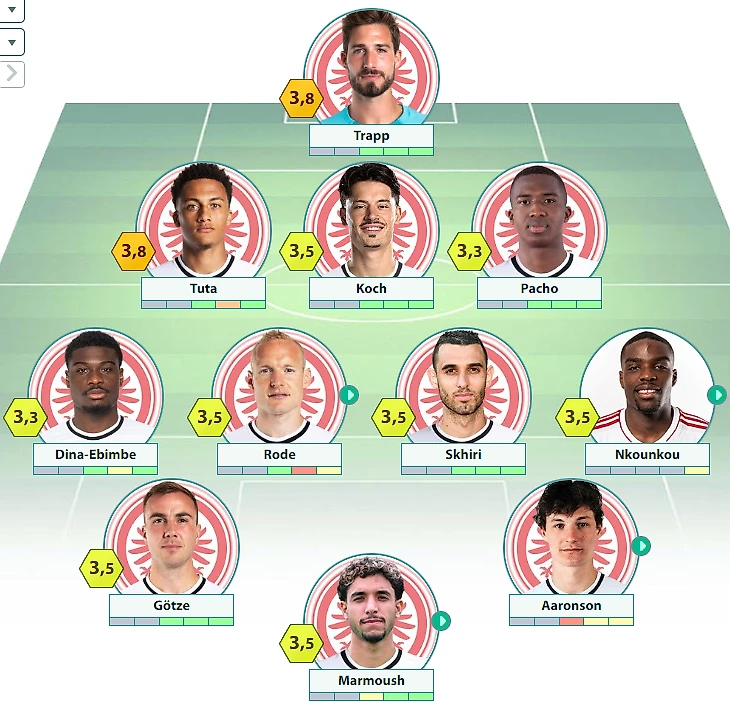 «Айнтрахт» Франкфурт : Трапп – Тута, Кох, Пачо – Бута, Роде, Схири, Нкунку – Эбимбе, Гетце – Мармуш