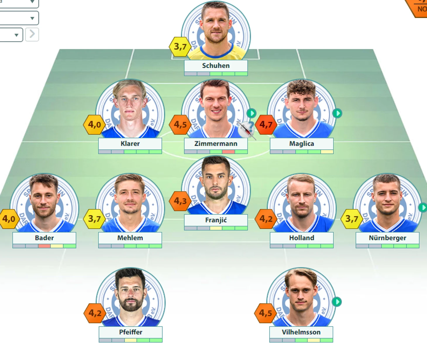 «Дармштадт» : Шуэн – Кларер, Циммерманн, Ишервуд – Бадер, Мелем, Франьич, Холланд, Карич – Пфайффер, Вильхельмссон