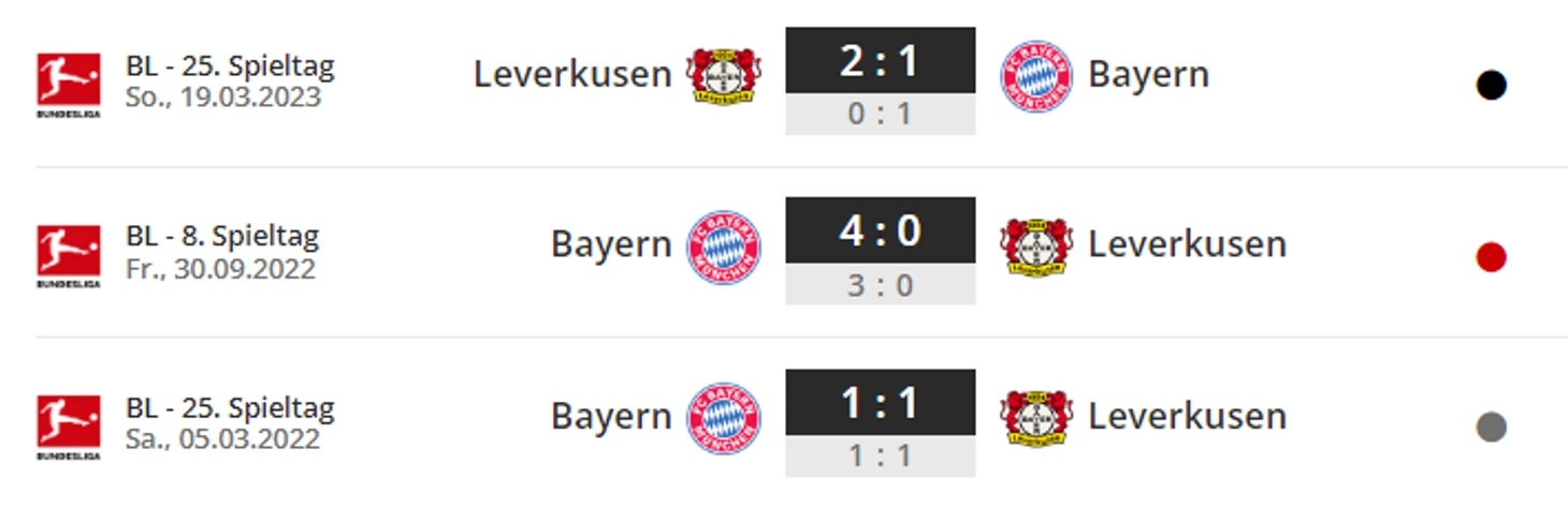 Эффективные нападающие: мюнхенская «Бавария» и леверкузенский «Байер 04» встречались восемь раз, будучи первыми и вторыми (или наоборот), причем «Бавария» выиграла семь последних из этих поединков (Леверкузен выиграл только в 1986 году). У обоих очень эффективные нападающие: из всех игроков Бундеслиги, забивших хотя бы три гола, Матису Телю и Виктору Бонифасу требовалось меньше всего минут на гол (61 и 67 соответственно).