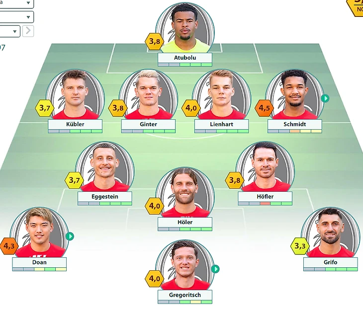 «Фрайбург» : Атуболу – Кюблер, Гинтер, Линхарт, Шмид – Эггештайн, Хефлер – Шаллаи, Доан, Грифо – Грегорич