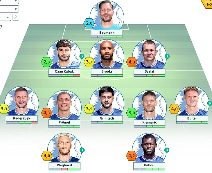 Возможные потери: Буркардт, Ляйтш, Вайпер, Видмер (Ажорк, Баркок, Ханче-Ольсен) – Йонг, Нарти (Ундав, Вагноман)