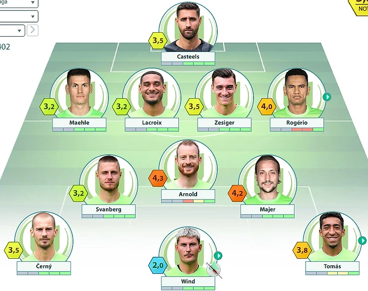«Вольфсбург» : Кастельс – Мэле, Лакруа, Цезигер, Рожерио – Сванберг, Арнольд, Майер – Черны, Винд, Виммер