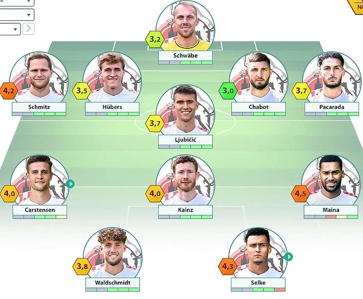 Ориентировочные составы (здесь и далее – версия Bundesliga.com – текст, версия LigaInsider.de – скрин):