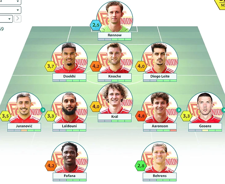 «Унион» Берлин : Реннов – Дуки, Кнохе, Лейте – Крал – Триммель, Лайдуни, Ааронсон, Руссийон – Фофана, Беренс