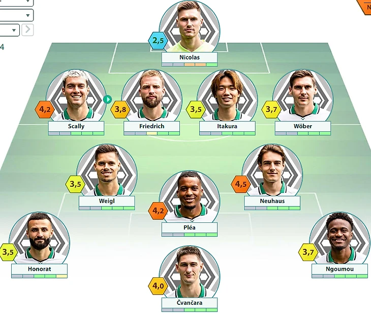 «Боруссия» Менхенгладбах : Николас – Скалли, Фридрих, Итакура, Вебер – Вайгль, Нойхаус – Нгуму, Райтц, Плеа – Чванчара
