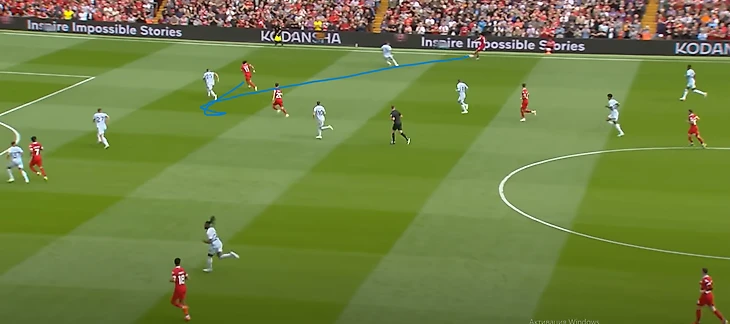 Для начала давайте вспомним в общих чертах какой командой был «Ливерпуль» Клоппа. Как любая команда Юргена он был прежде всего интенсивным и скоростным: высокий прессинг, контрпрессинг, рывки, огромные пробеги за матч и т.д. В свою очередь цитата «Прессинг лучший плеймейкер» описывала половину атакующей игры, второй частью служил знаменитый треугольник Хендерсон-Салах-Трент, выводящий последнего на подачу в штрафную. Примерно так все было при двух финалах ЛЧ подряд, а после сезона 18/19 пошли неторопливые, но явные изменения: команда становилась более разнообразной и монолитной, стало появляться больше творческих решений с мячом. Апогеем же изменений стал конец прошлого сезона, где Александр Арнольд стал активно заходить в середину и делать обостряющие передачи оттуда, а навсегда канул в лету старый, немного прямолинейный стиль «Ливерпуля», когда клуб покинули Милнер, Хендерсон и Фирмино. На их же места пришли Мак Аллистер, Собослай и Гакпо. Согласитесь, замена ушедшим видится более творческой и креативной. Таким и стал нынешний «Мерсисайд». Раньше они были командой-гениальный навес, ведь очень многое в атаке строилось на кроссах или на контратаках. Сейчас же в силу изменений контратаки стали не настолько убийственны, а навесы сменились на невероятные передачи вразрез.