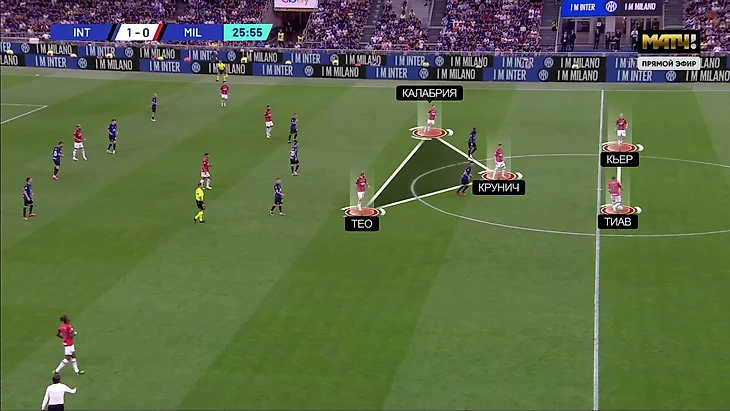 Матч дал неприятные, но точные ответы. В случае с Тео речь скорее об ограничении его потенциала – он может играть в необычной роли, но в более привычной позиции дал бы команде больше. А вот Калабрия в ложной роли откровенно вредил. Разберем несколько ситуаций.
