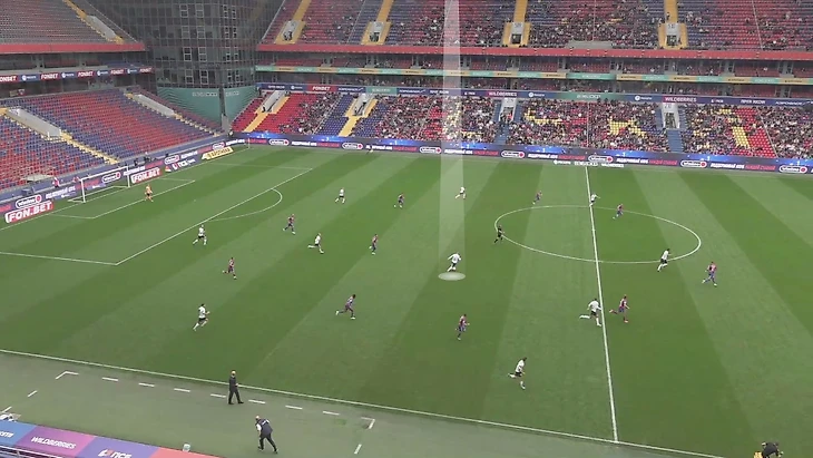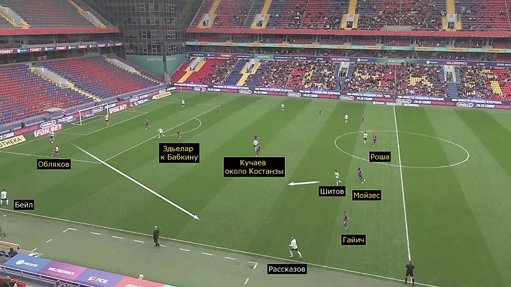 1. ЦСКА пошел в давление, где Здьелар выскочил за Бабкиным к штрафной, а Кучаев был с Костанзой.