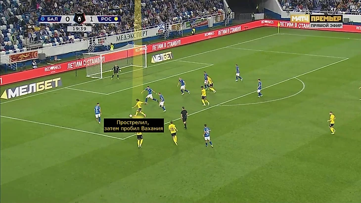 «Ростов» против «Балтики» адаптировал привычные розыгрыши мяча: Глебов часто оказывался между ЦЗ Терентьевым и Мелехиным, Уткин и Миронов располагались над ними, Чернов и Вахания становились высокими латералями, Голенков и Байрамян спускались глубже, Мохеби мог становиться центральным нападающим. Почти все элементы мы могли видеть в прошлом сезоне и начале этого (особенно – роли Голенкова и Байрамяна).