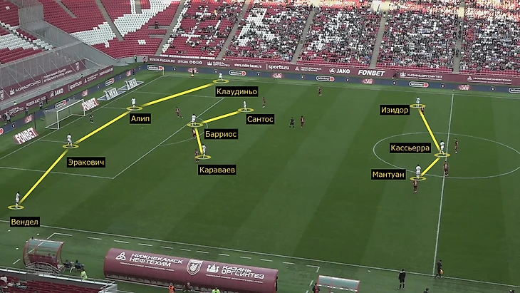 В середине первого тайма Караваев забегал через полуфланг: Вендел отказался от передачи на ход, зато нашел Клаудиньо.