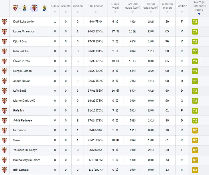 Испанский ветеран вышел в стартовом составе «Севильи» и отыграл все 90 минут. Команда Хосе Луиса Мендилибара записала на свой счет первую победу в сезоне, которая к тому же была «сухой».