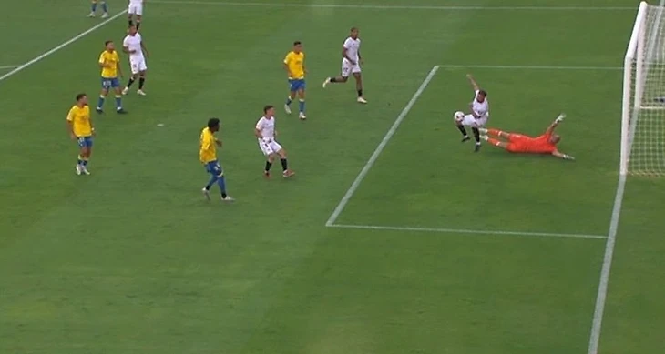 На 47-й минуте матча Серхио Рамос доказал, что его не зря вернули в «Севилью». Марко Дмитрович отбил удар, который летел в створ, но сделал это не очень удачно. Игрок «Лас-Пальмас», казалось бы, сейчас дошлет мяч в рамку, но на пути встала грудь Рамоса. Пришлось даже вмешаться VAR: выглядело настолько невероятно, что казалось будто бы испанец сыграл рукой.