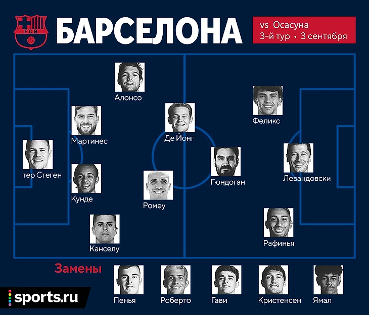 У «Барселоны» не самая длинная скамейка, однако даже в таких условиях есть минимум по 2 варианта на каждую позицию. Лигу чемпионов важно начать с победы, поэтому главный тренер может быть крайне осторожен и распределить ротацию не на один матч, а на несколько, используя точечные замены.