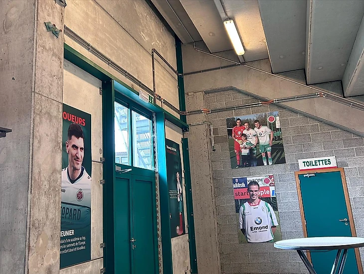 Туалет расположен внутри трибуны, довольно чистый и цивильный. В помещении висят ретро плакаты с игроками клуба.