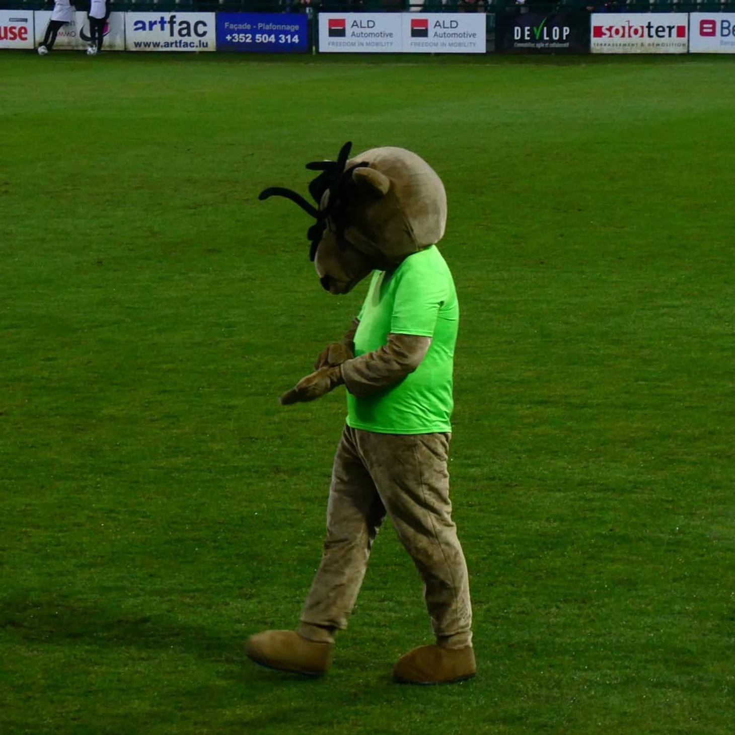 Перед матчем из всех развлечений есть грустно ходячий по полю маскот клуба. На кого похож – непонятно. Какой-то бык с густыми бровями.