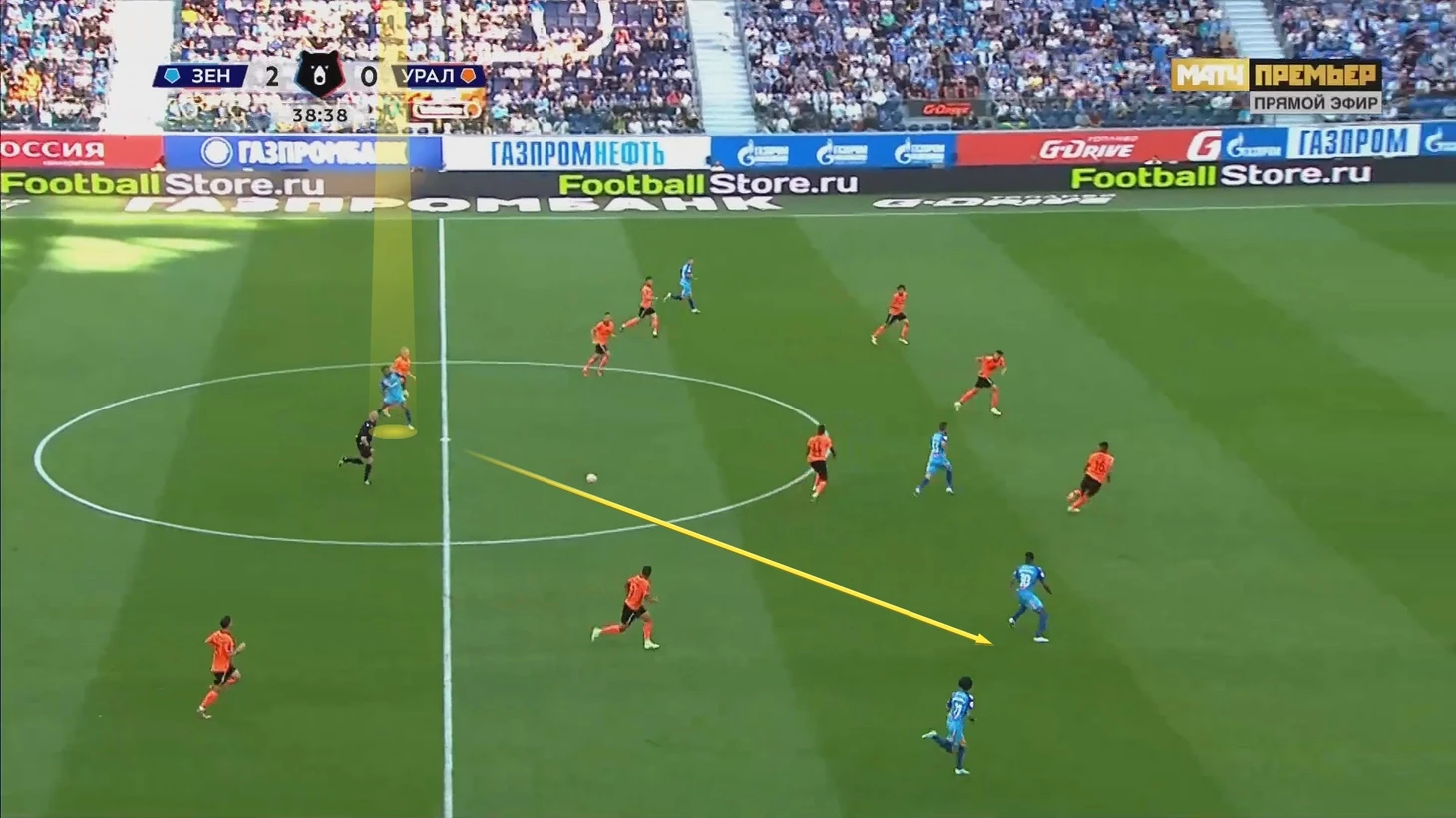 Вендел практически не использует забросы, поэтому доминирует при коротких и средних пасах – уже четвертый в «Зените» по точным передачам в финальную треть. Так «Зенит» быстрее переходит вперед: Вендел смелыми передачами находит свободные зоны, даже если пас кажется трудным.