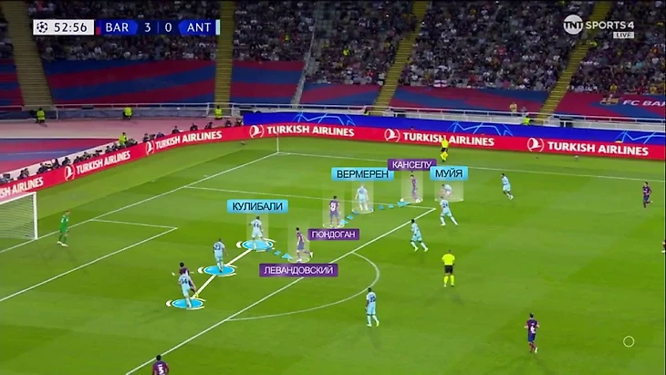 Так как Канселу оказался без опеки (Муйя поздно спохватился), а Кулибали уже был связан Левандовским, Вермерен в штрафной оказался один против Гюндогана и Канселу и довести до удара эту атаку уже было делом техники:
