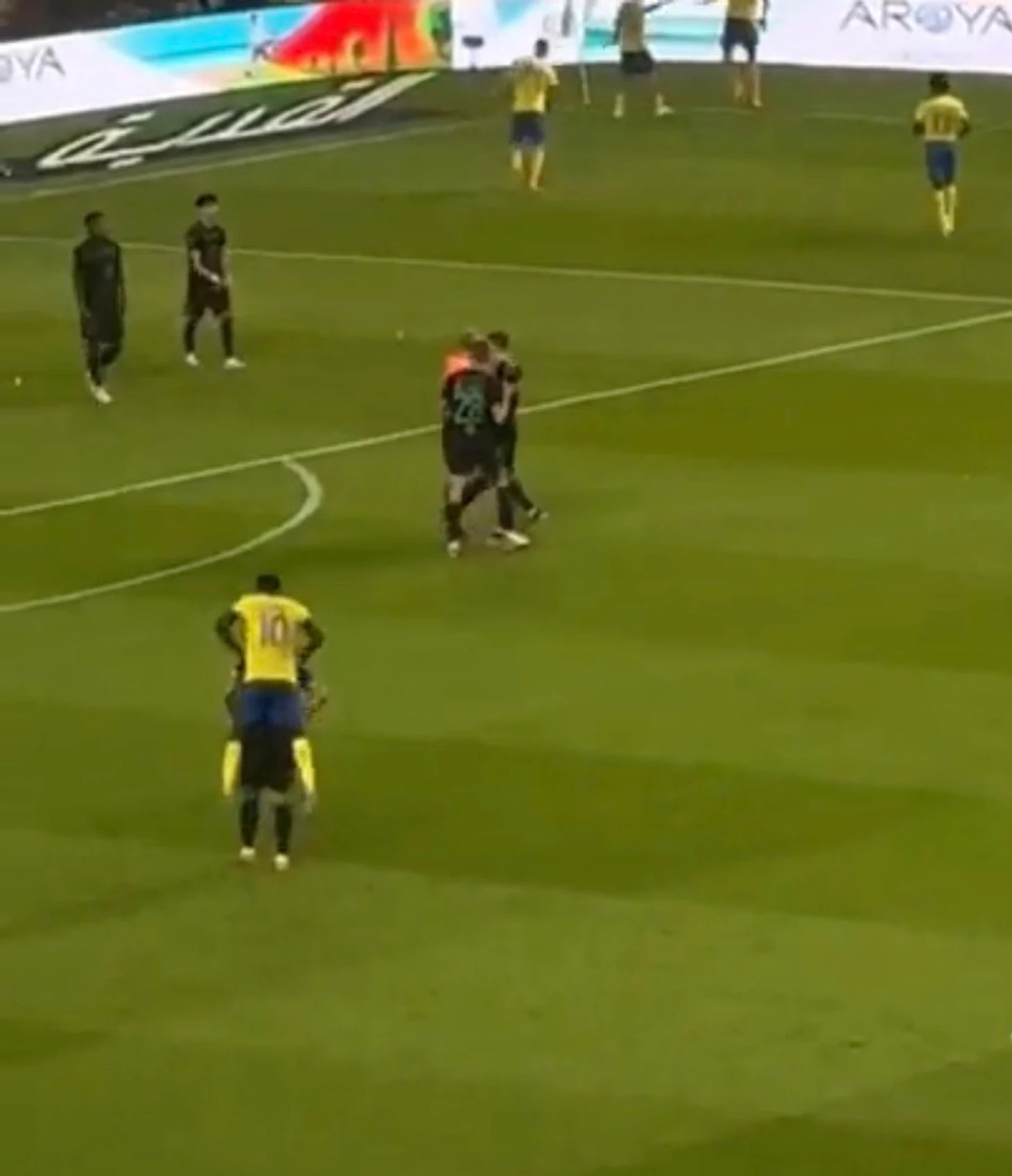 Забавный момент произошел после того, как бразилец Талиска оформил дубль в конце первого тайма. Звезда «Аль-Насра» Садьо Мане так обрадовался за партнера, что запрыгнул на спину к звезде «Аль-Ахли» Роберто Фирмино.