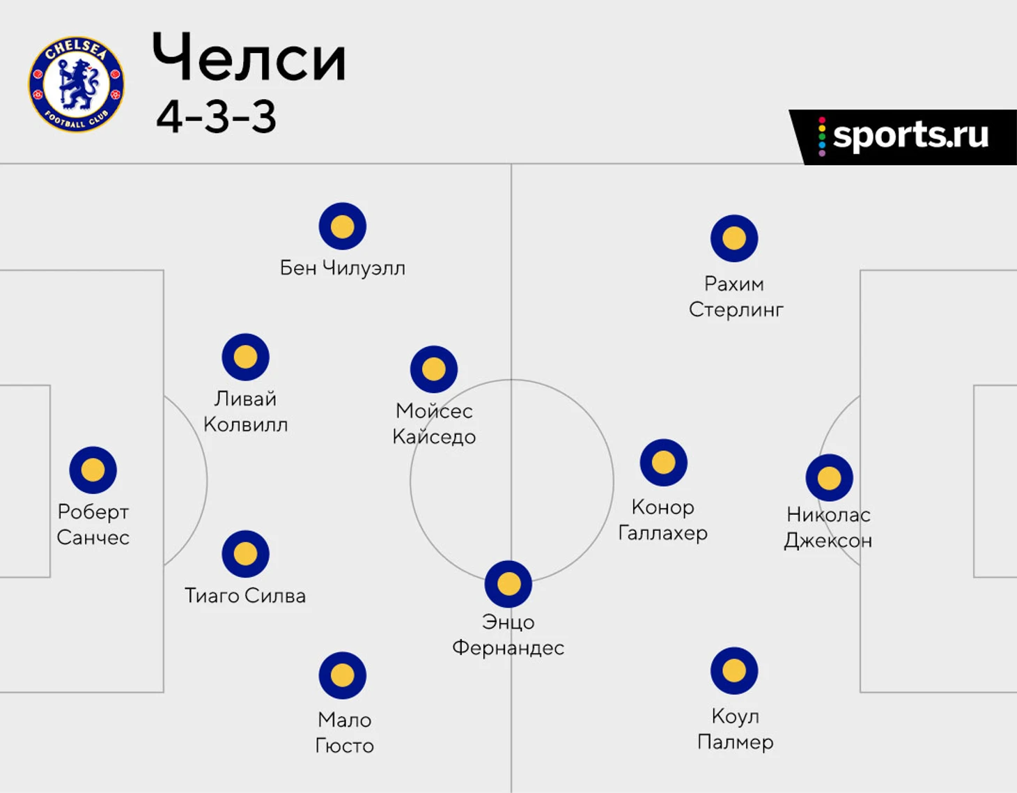 Есть другой сценарий: Палмер выйдет вместо того же Галлахера, Стерлинг выйдет справа, а Мудрик – слева. Такая расстановка потребует большего внимания Энцо к центру поля, а не слишком высоким позициям, которые он занимал в прошлом туре (и был, увы, довольно бесполезен там).