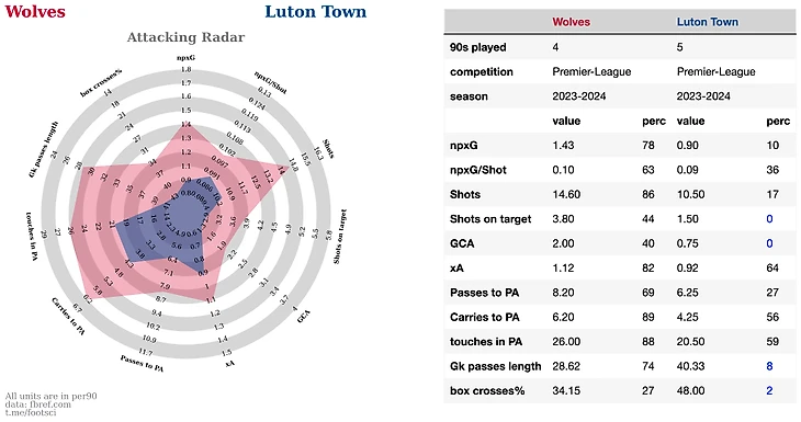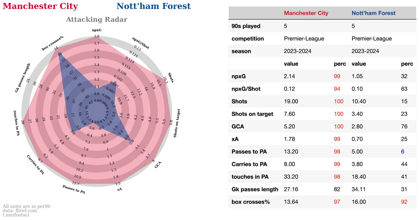 В качестве ориентира использовал шаблоны радаров StatsBomb из этой статьи (но не все метрики можно собрать по данным fbref).