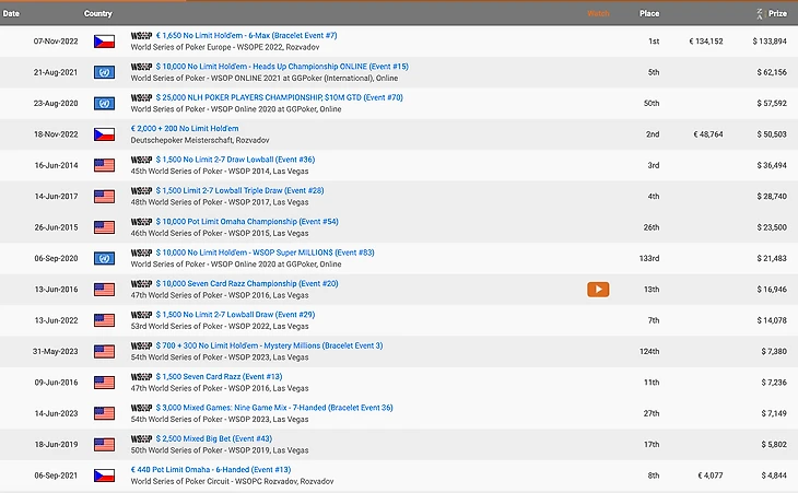 Макс Крузе — обладатель браслета WSOP Europe (одной из самых престижных наград в покере). В ноябре 2022 года он выиграл турнир за €1,650 на 413 входов и получил €134K призовых.