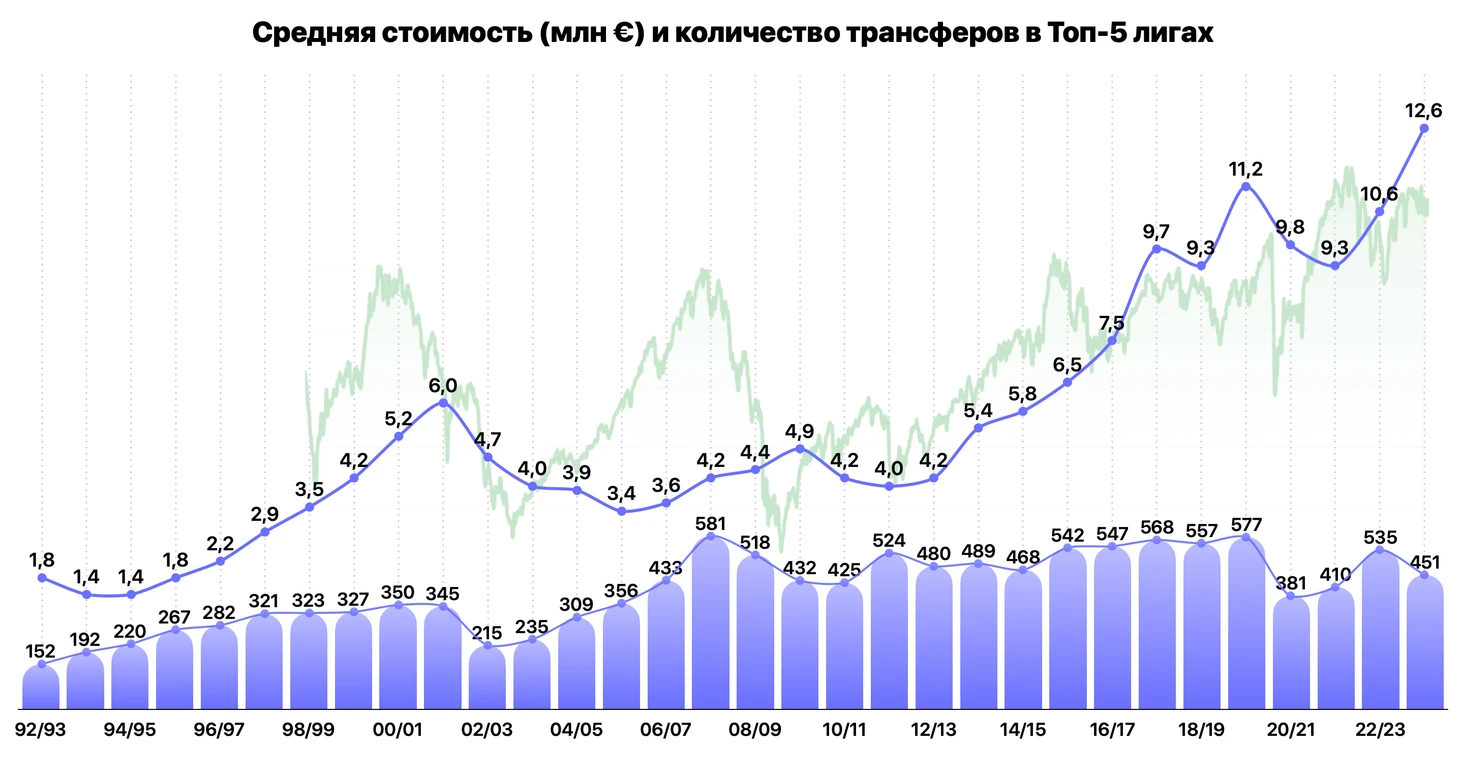 В описании к индексу раскрыто, что он основан на топ-100 трансферов каждого сезона в топ-5 лиг Европы по данным Transfermarkt.
