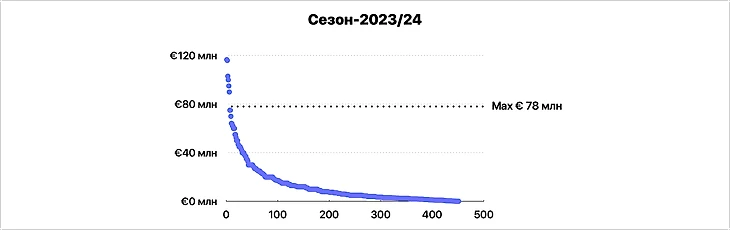 Расчеты сделаны на данных Transfermarkt по состоянию на сентябрь 2023 «как есть» без их факт-чекинга и уточнения.