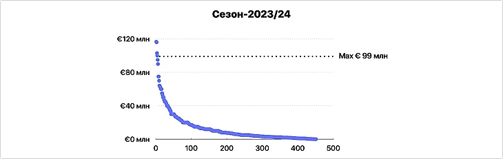 В сезоне-2023/24, к которому будут индексироваться цены, эта модель исключила все трансферы за 90+ млн евро.
