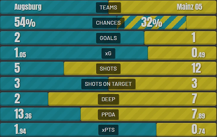 «Майнц» продолжает деградировать от матча к матчу. «Карнавальщики» хоть и забили в ворота Аугсбурга первыми уже в дебюте матча, а затем даже увеличили свое преимущество, но гол был отменен из-за офсайда это их не спасло. Почти сразу после отмененного года Демирович счет сравнял, а на последних минутах тайма оформил дубль полностью сломав гостей психологически. Во второй половине встречи хозяева остались в меньшинстве, но даже численное преимущество не помогло худшей команде Бундеслиги спасти хотя бы очко. 2-1.