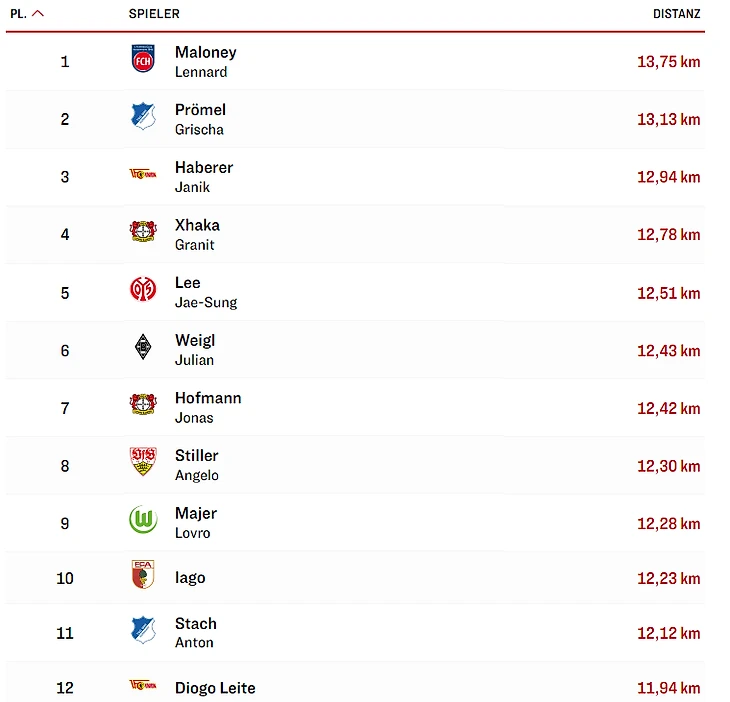 *игрок – кол-во игр – кол-во минут – в среднем км за 90 мин – всего км