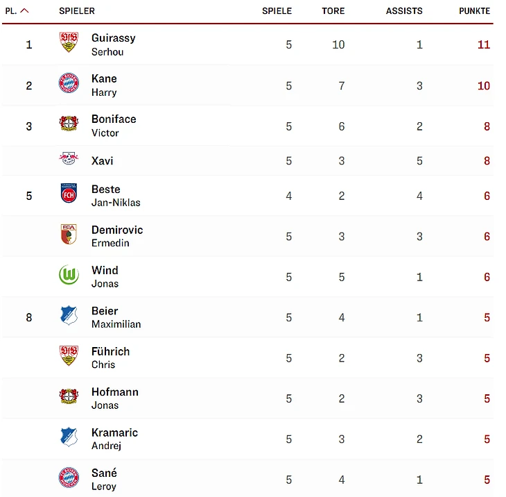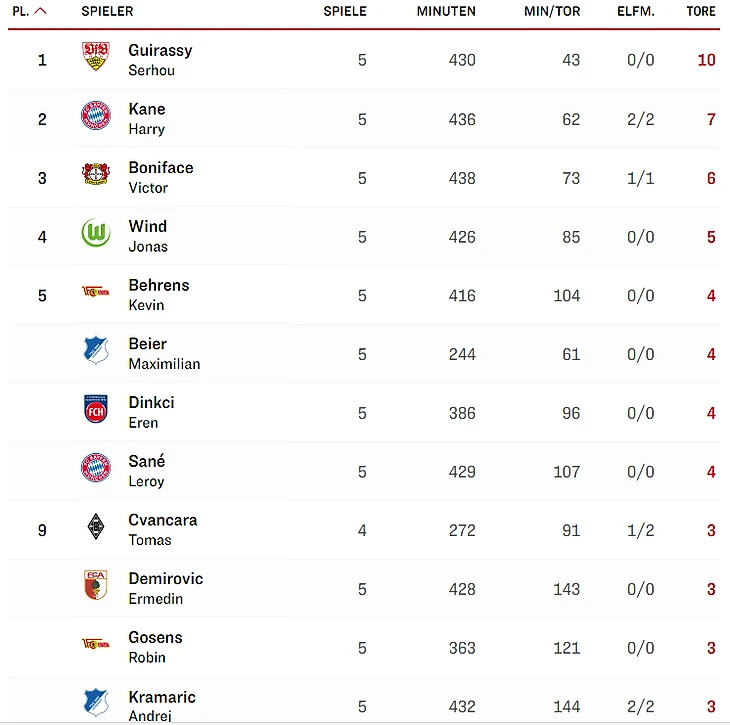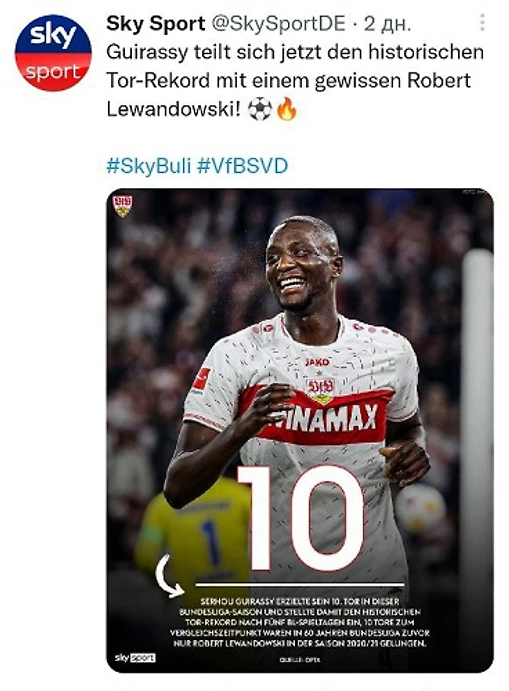 Гирасси забил свой десятый гол в этом сезоне Бундеслиги. Забить столько голов за пять туров немецкого первенства удавалось лишь Роберту Левандовскому в сезоне 2020/21.
