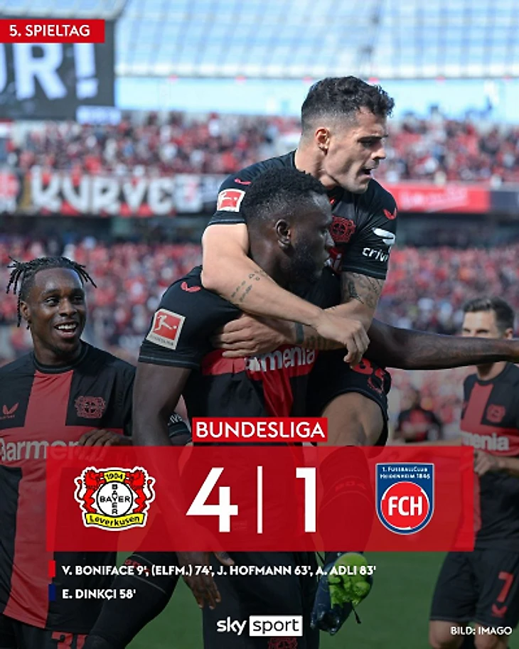 Победа принесла «Байеру» 13 очков и сравняла в турнирной таблице с «Баварией», Хайденхайм с четырьмя пунктами тринадцатый.
