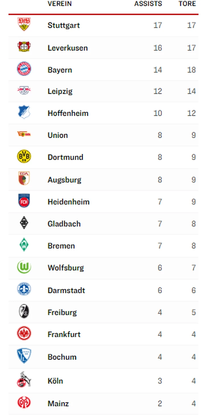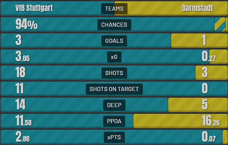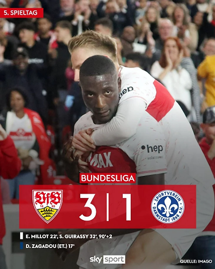 В конце встречи Гирасси вовсе оформил дубль и забил свой девятый гол в этом сезоне Бундеслиги. Финальный свисток зафиксировал победу «Штутгарта» со счетом 3:1. Благодаря этому успеху подопечные Себастиана Хёнесса набрали 12 очков, поднявшись на первую позицию в турнирной таблице!